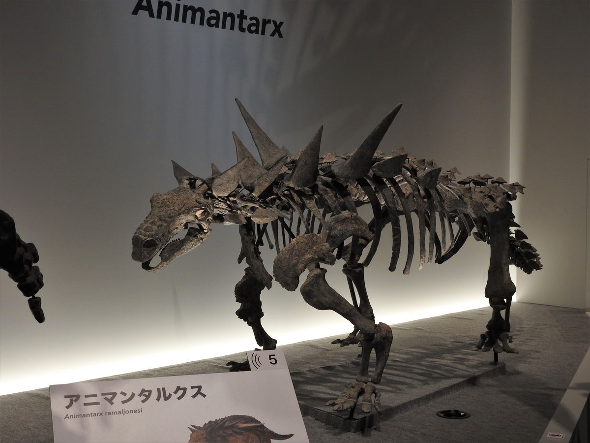 ズール含めアンキロサウルス科が多いが、ノドサウルス科もちゃんと展示されている。ノドサウルス科好きの筆者には嬉しい構成。アニマンタルクスって初めて聞いたけど超かっこいいな。ちなみにこの子も解説パネルのイラストと肩トゲの位置が一致していない。展示ではサウロペルタのように上を向いているが、イラストではボレアロペルタのように横を向いている(ただしサウロペルタの肩トゲの向きについては特に根拠はないらしい)。